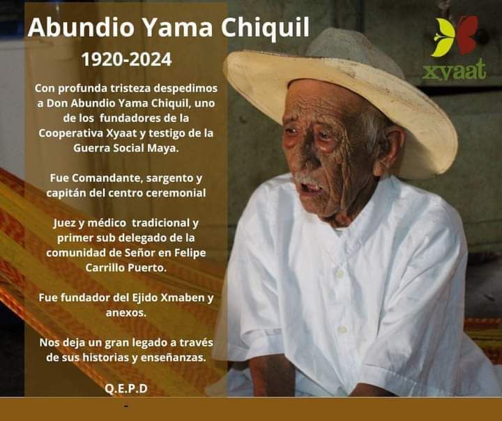 El último testigo de la Guerra de Gastas fue sargento, juez, médico tradicional y capitán del centro ceremonial de la comunidad de Señor, además, fue fundador de ejido Xmaben y Anexos.