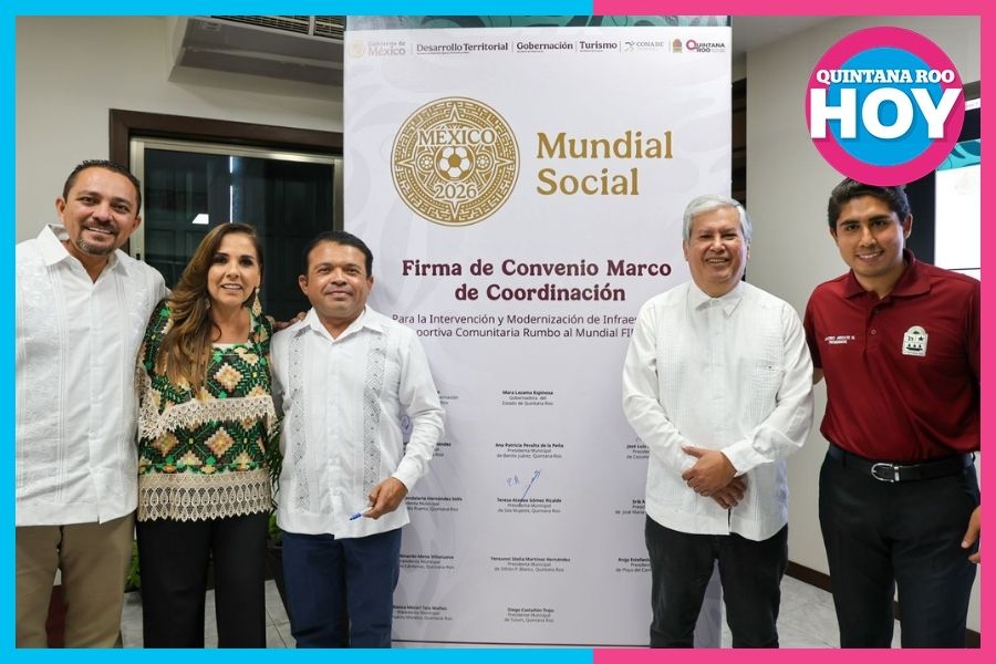 El Gobierno de Quintana Roo firmó el convenio del Mundial Social 2026, con una inversión de más de 63 millones de pesos para rehabilitar 46 espacios deportivos en los 11 municipios.