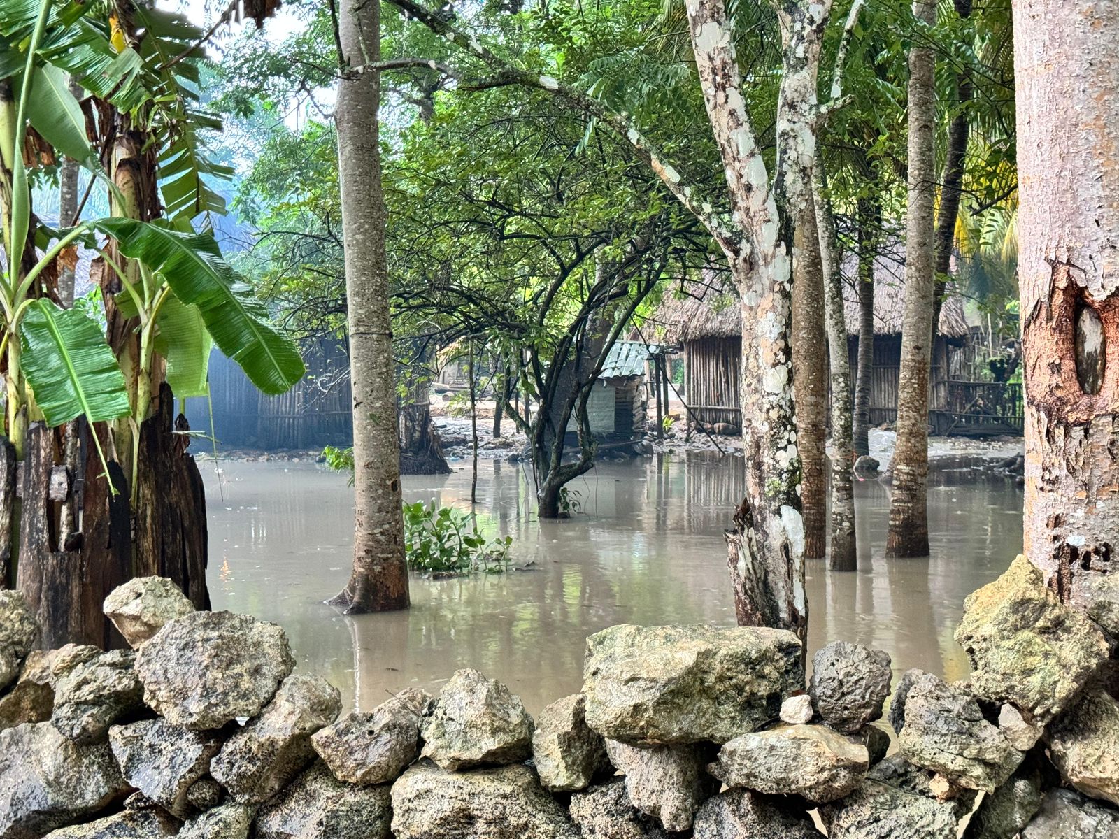 Saulo Che delegado de la comunidad de Naranjal Poniente informó que la mayoría de las viviendas ubicadas en las partes bajas de la comunidad se han inundado con las intensas lluvias y que las familias se han refugiado en la casa de sus familiares.