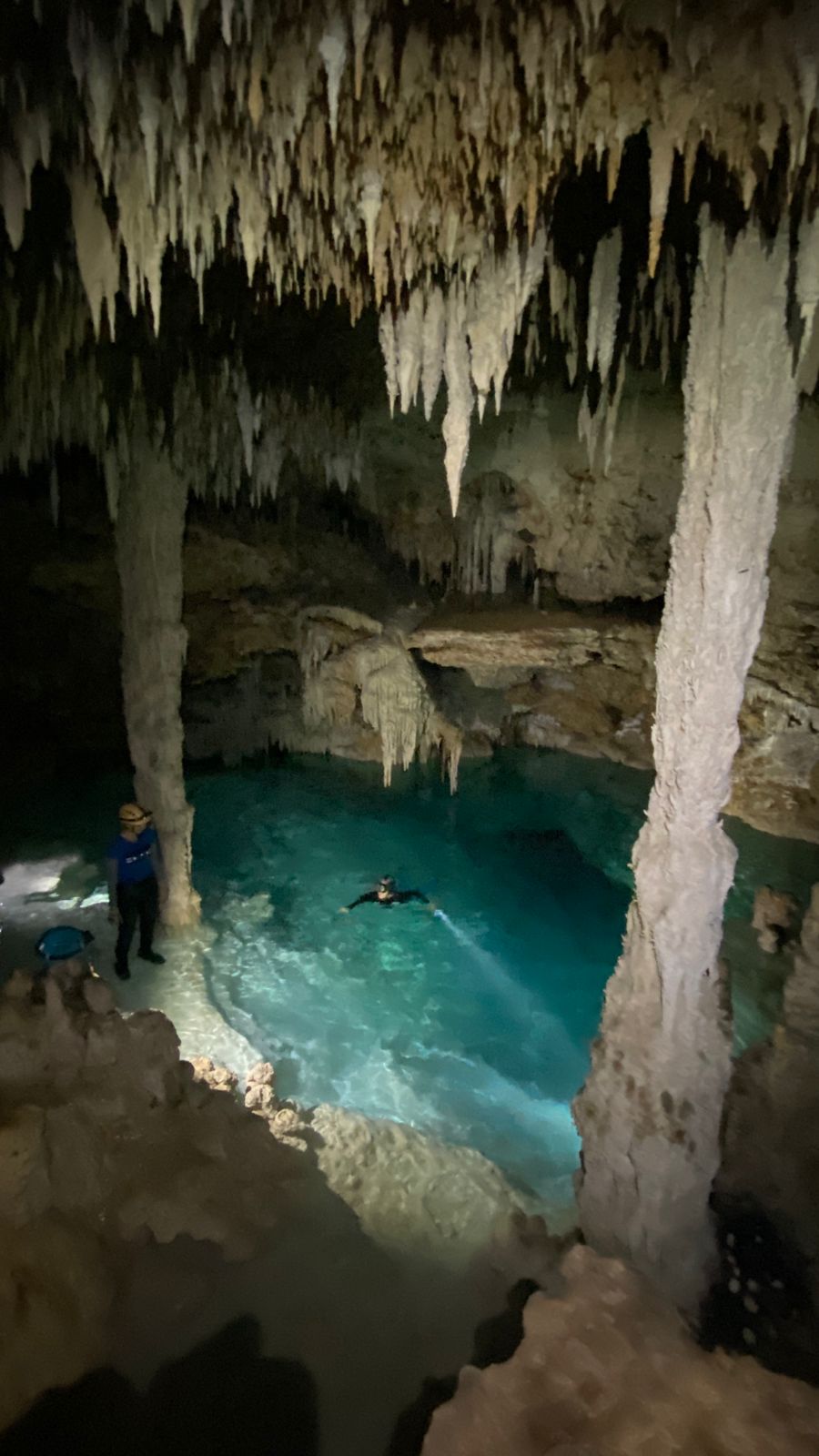 “Te envió un video de los pilotes bajo el agua oxidándose y cómo están contaminando el agua, ya la están impactando; también se ve cómo los cenotes han perdido visibilidad por la cantidad de sedimento, se ve lechoso. Hay que evaluar el impacto y la mitigación”, añade el submarinista.