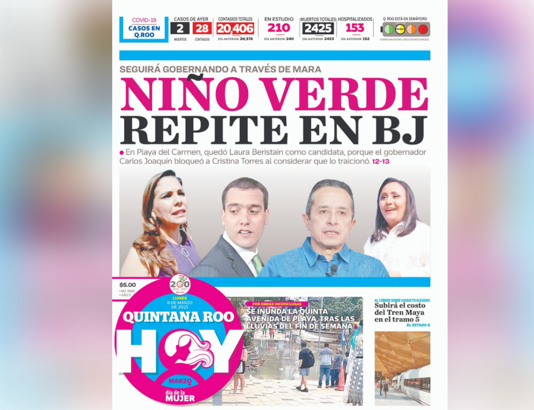 En el municipio de Solidaridad a pesar de todas sus ineficiencias y corruptelas debidamente documentadas, Laura Beristain parecía tener la delantera ante la poca competencia interna. Las rivales registradas no tienen ni el colmillo ni el oficio político suficiente para hacerle sombra. Ni siquiera los negocios de Luz María Beristain ni las acciones pederastas de su hermano la frenaban.