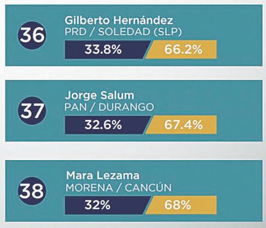 En un estudio de opinión sobre los candidatos a la presidencia municipal de Benito Juárez, realizado recientemente por la consultora De las Heras, le dan a Mara Lezama una intención del voto del 33%, mientras a que a la senadora Marybel Villegas le dan el 44%.