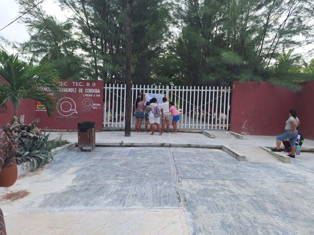 Con pancartas que pegaron en frente del plantel educativo piden a la Secretaría de Educación en Quintana Roo (SEQ) que encabeza, Elda Xix Euan, que se complete la plantilla docente, porque sus hijos están perdiendo clases.