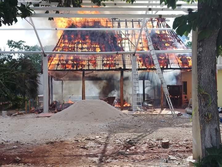 FELIPE CARRILLO PUERTO. – Una palapa, parte de un local comercial fue consumido por el voraz fuego, que presuntamente fue generado por una chispa cuando un herrero soldaba una puerta en el interior, lamentablemente los bomberos no pudieron actuar oportunamente ante la falta de equipo.