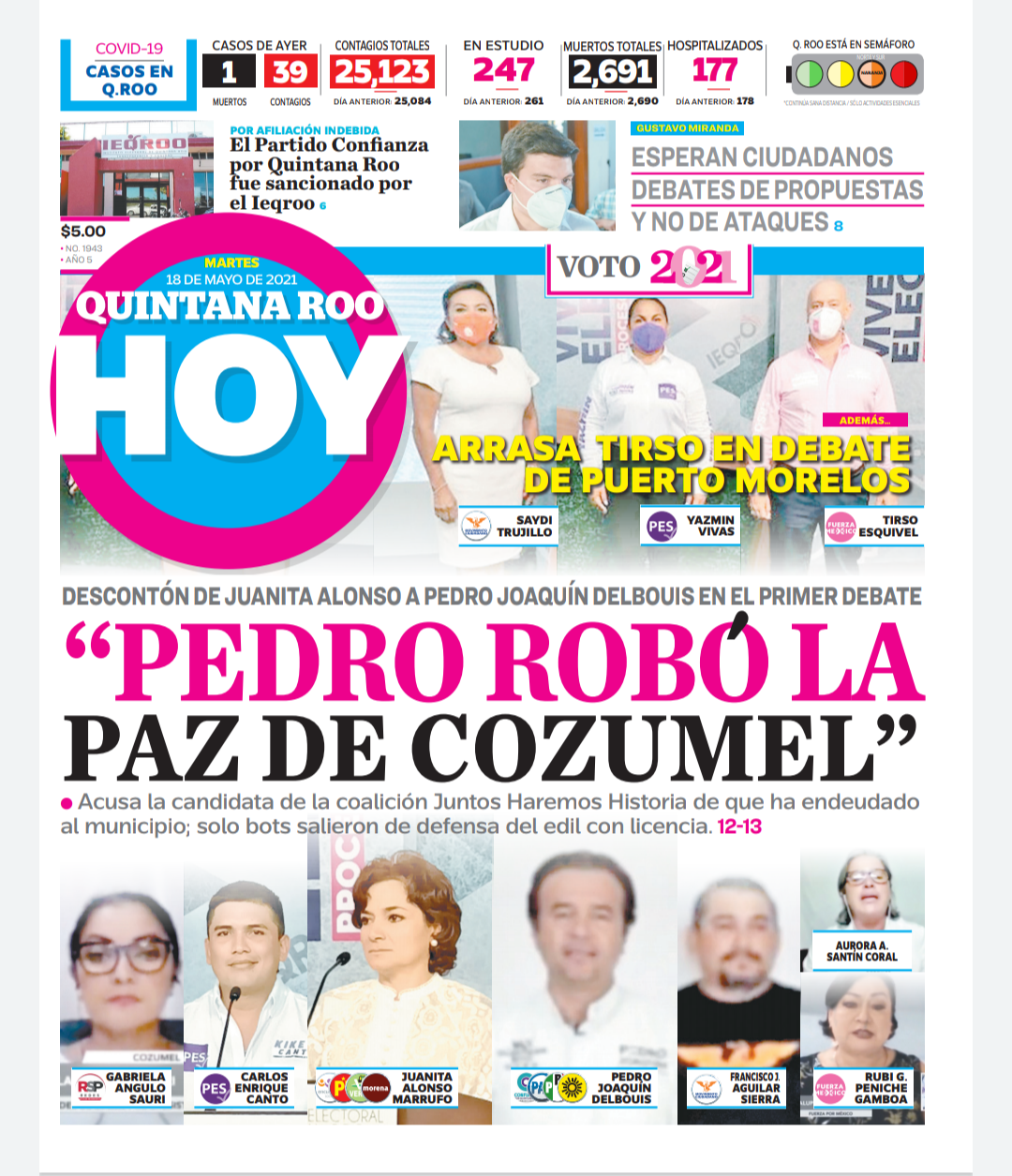 Caótico debate en Cozumel; sacan trapos sucios a Pedro Joaquín. Participaron siete candidatos, sólo dos de ellos, Juanita Alonso Marrufo y Carlos Enrique Canto, de forma presencial