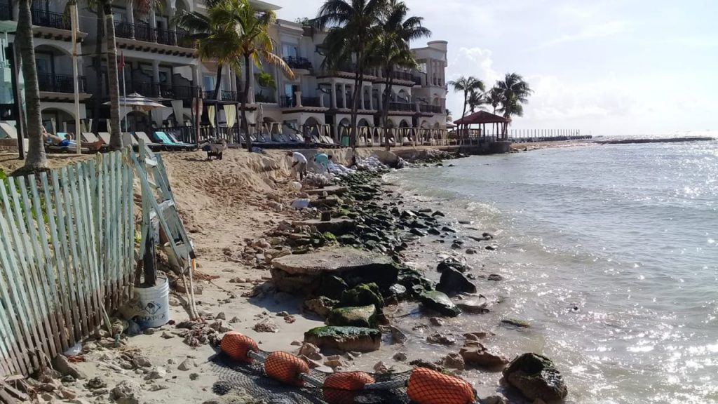 Playa del Carmen.- Producto del Frente Frío número 8 y del Canal de Baja Presión que atraviesa la Península de Yucatán, el mal tiempo provocó una severa erosión en determinados puntos de las costas solidarenses.