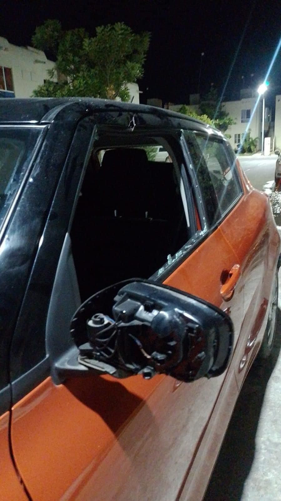 Los vidrios laterales de este vehículo se rompieron, logrando herir en el rostro al menor que iba a abordo y a la mujer que estaba por bajarse del auto cuando esta unidad fue interceptada por el taxista.