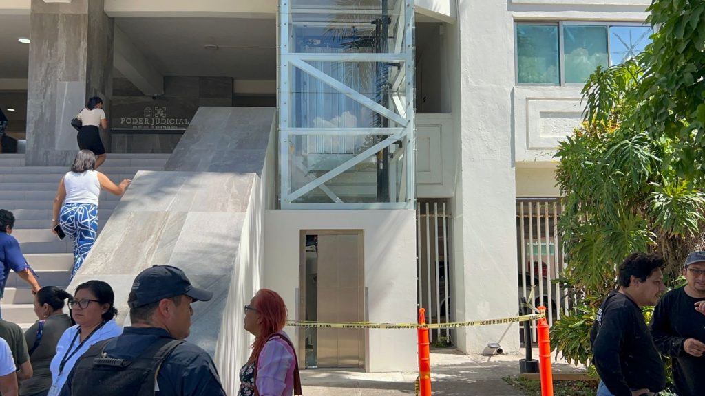 Playa del Carmen.- El elevador de los tribunales del Poder Judicial de Quintana Roo en esta ciudad se desplomó, al cortarse una de sus cuerdas, mientras se le brindaba mantenimiento, lo que dejó a un trabajador lesionado, la mañana de este lunes.