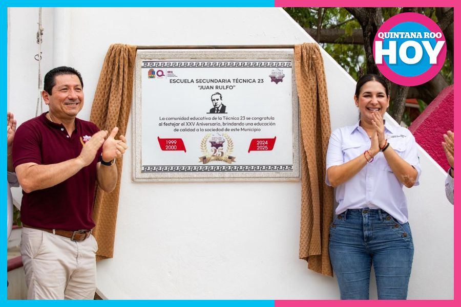 Playa del Carmen.- La presidenta municipal Estefanía Mercado encabezó la conmemoración del 25 aniversario de la Escuela Secundaria Técnica Número 23 “Juan Rulfo”, donde reafirmó que en Playa del Carmen la educación es una prioridad del gobierno y un derecho humano que transforma vidas.