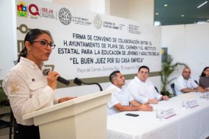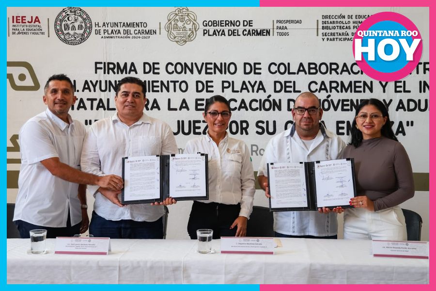 Playa del Carmen,- El Gobierno de Playa del Carmen, que encabeza la presidenta municipal Estefanía Mercado, y el Instituto Estatal para la Educación de Jóvenes y Adultos (IEEJA) firmaron el convenio de colaboración del programa “El buen juez por su casa empieza”, con el objetivo de facilitar el acceso y la conclusión de la educación básica para las y los trabajadores del Ayuntamiento que no han finalizado sus estudios.
