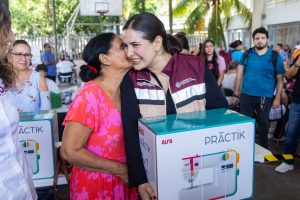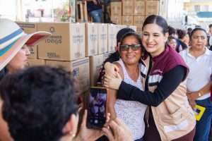 La presidenta municipal Estefanía Mercado supervisó la entrega de 350 máquinas de coser de Faro y paquetes alimentarios del programa ‘Comemos Todos’