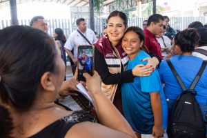 Playa del Carmen.— La presidenta municipal Estefanía Mercado visitó este miércoles el módulo instalado por la Secretaría del Bienestar (Sebien) para supervisar la entrega de máquinas de coser de la Fábrica de Artes y Oficios (Faro), paquetes alimentarios del programa “Comemos Todos” y afiliación al programa “Salud Sin Tanto Choro”, una iniciativaque acerca atención médica directa, rápida y sin trámites complicados a las familias playenses.