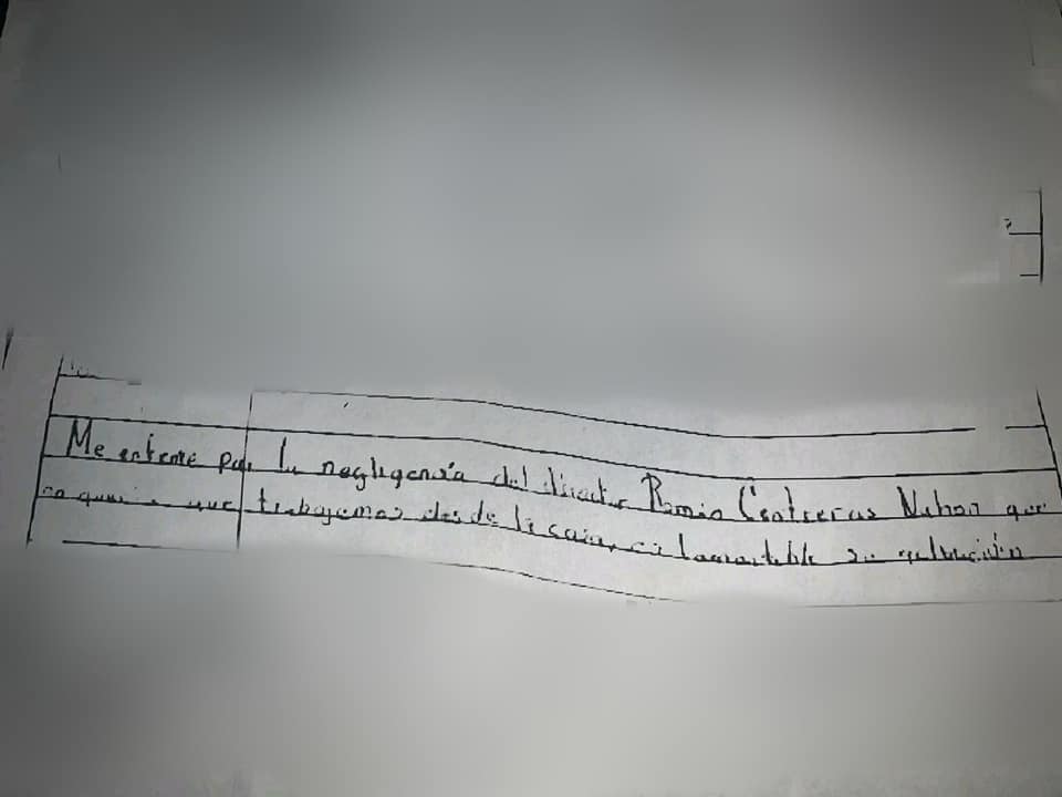 En el texto escrito de su puño y letra, responsabilizó a Contreras de no tomar las medidas pertinentes para evitar contagios, ya que en esa oficina municipal, señaló, al menos habría cuarto infectados.