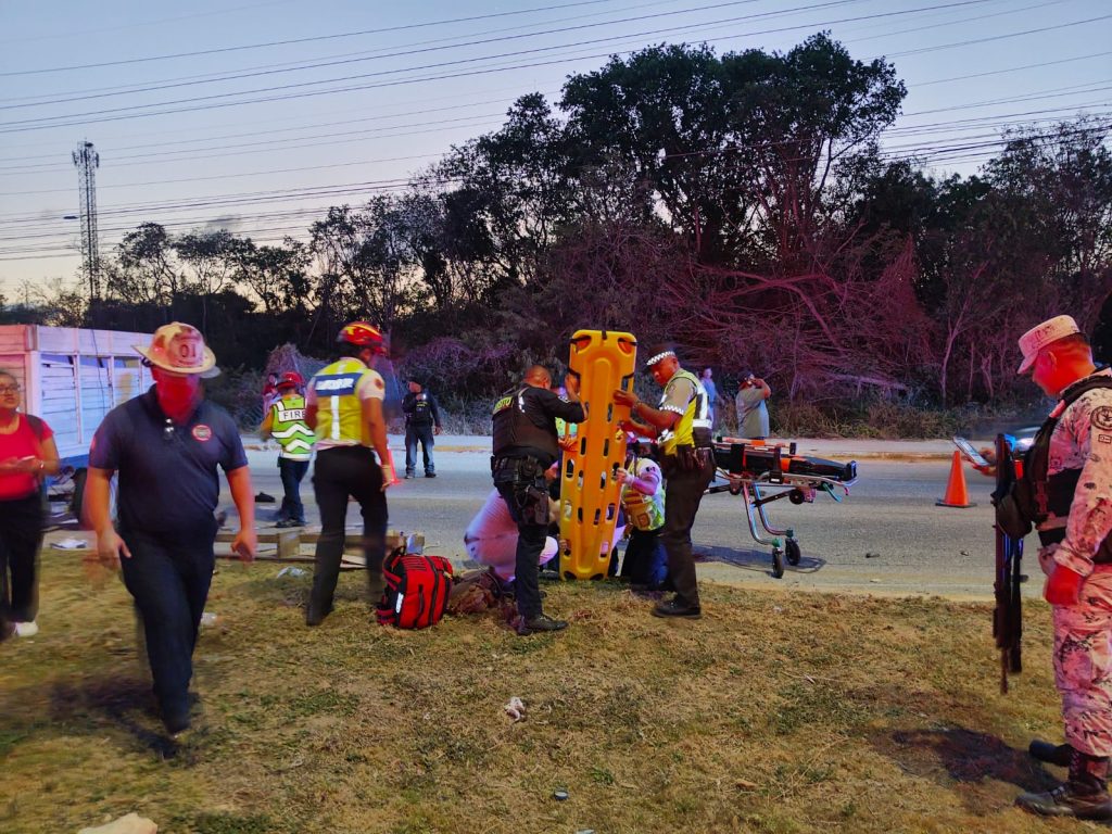 Playa del Carmen,– En una rápida y coordinada respuesta, elementos de la Secretaría de Protección Civil, Prevención de Riesgos y Bomberos, en conjunto con la Secretaría de Seguridad Ciudadana Municipal y con apoyo de la Guardia Nacional, atendieron un fuerte accidente vehicular registrado sobre la carretera federal 307, en el tramo Cancún–Playa del Carmen, antes del ingreso a la cabecera municipal.