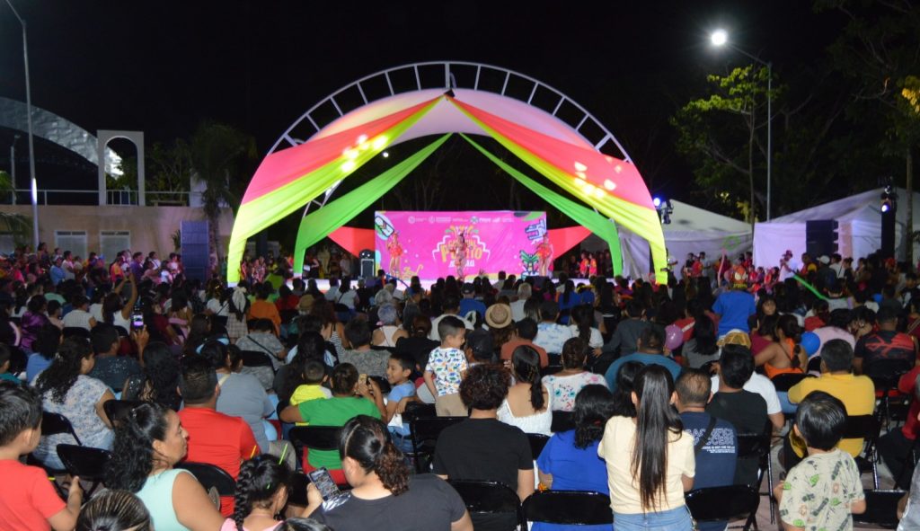 Puerto Aventuras, Quintana Roo,.— El ambiente de fiesta y diversión llegó anoche a la Alcaldía con la elección de los soberanos del “Carnaval del Pueblo” Puerto Aventuras 2025 y de las reinas y reyes infantiles, discapacidad, adulto mayor y de la diversidad, quienes presentaron un gran espectáculo artístico musical, donde se les calificó creatividad, originalidad, ejecución, vestuario y ritmo.