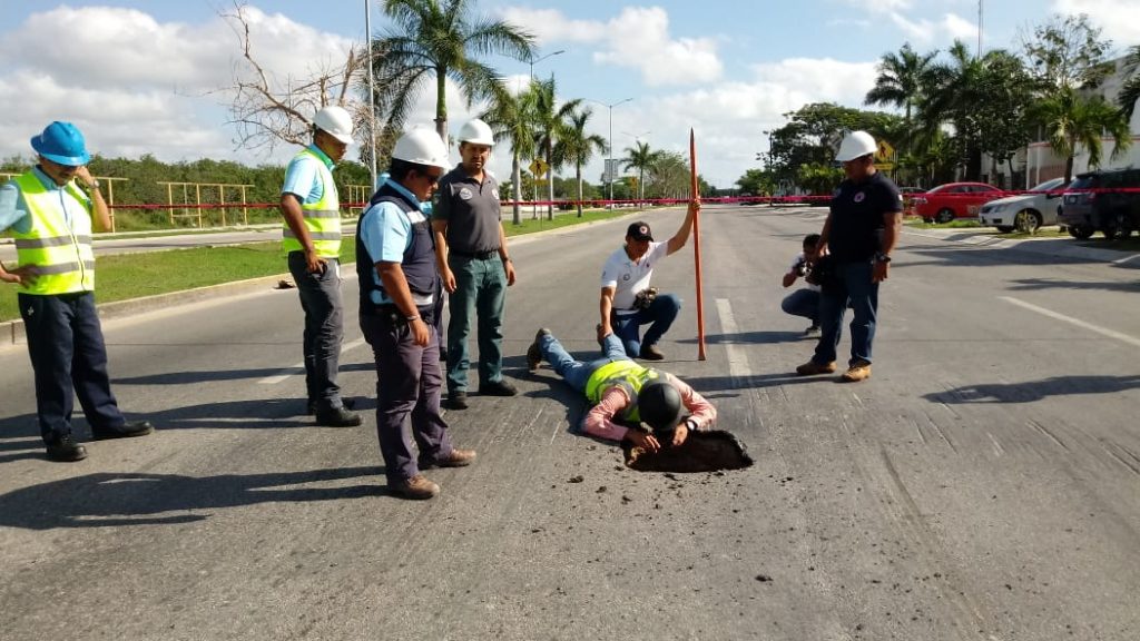 La aparición de un socavón en el Arco Vial, entre las avenidas 28 de Julio y Playa del Carmen, a la altura del fraccionamiento Villamar 1 obligó al cierre total de la circulación de sur a norte sobre esta avenida.