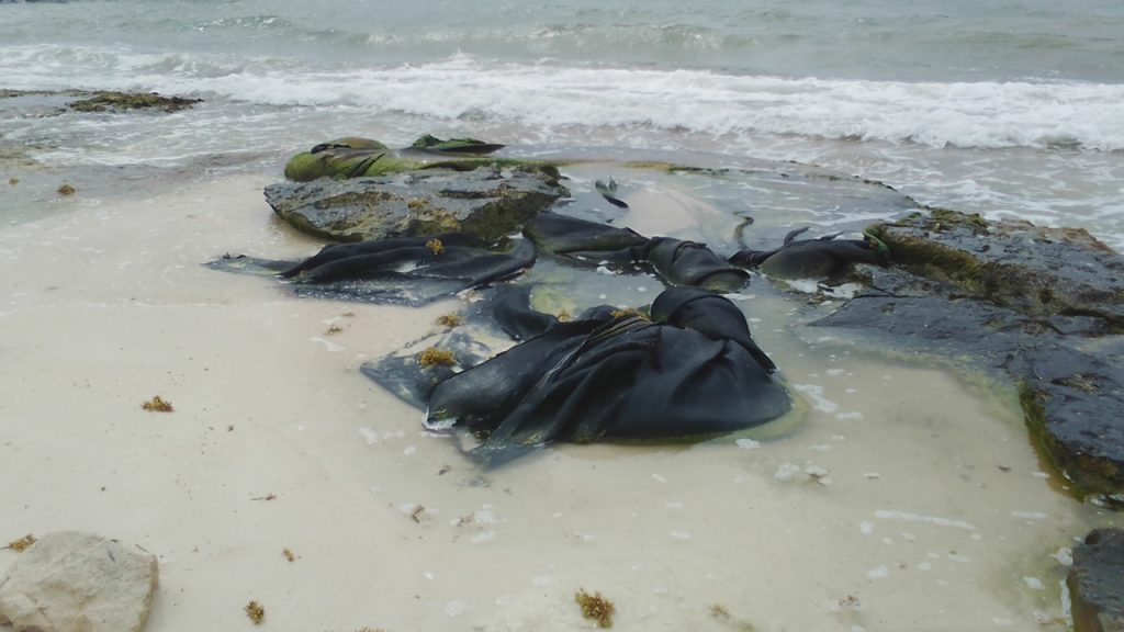 Playa del Carmen.- El hotel The Fives, no sólo colocó geotextiles sin los permisos correspondientes. Ahora uno de éstos se reventó quedando los restos sobre la playa erosionada, sin que la recojan.