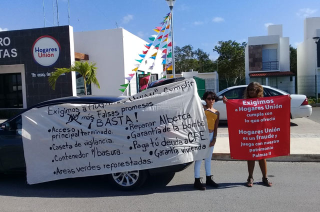Al no haber ya oficinas en este fraccionamiento, los inconformes se trasladaron a la prolongación de la avenida Colosio, donde la desarrolladora Hogares Unión pretende abrir otro complejo habitacional, Palmas Turquesa.