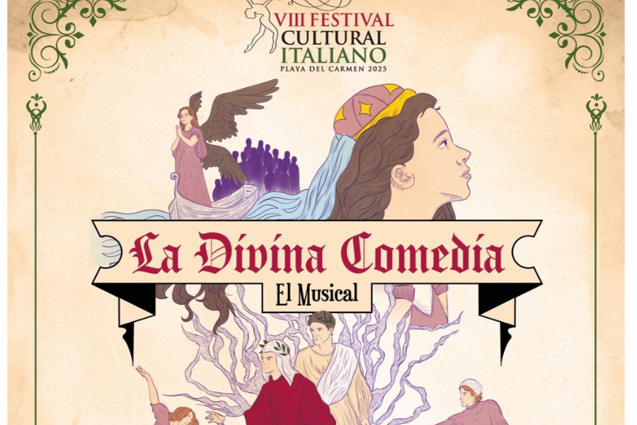 Playa del Carmen.- Una travesía por el Infierno, el Purgatorio y el Paraíso llegará al escenario del Teatro de la Ciudad de Playa del Carmen este 13 y 14 de junio, con la llegada del VIII Festival Cultural Italiano, que presenta una adaptación única de La Divina Comedia de Dante Alighieri, dirigida por la maestra italiana Clinzia Martina, en colaboración con la Academia de Danza “On Stage”.