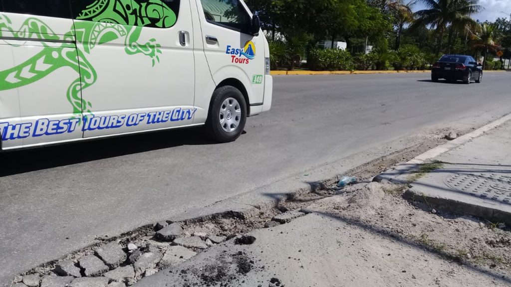 PLAYA DEL CARMEN.- Automovilistas de esta ciudad se quejan en redes sociales de la mala calidad con que la empresa Z gas reparó el Boulevard Playa del Carmen luego de introducir su gasoducto.