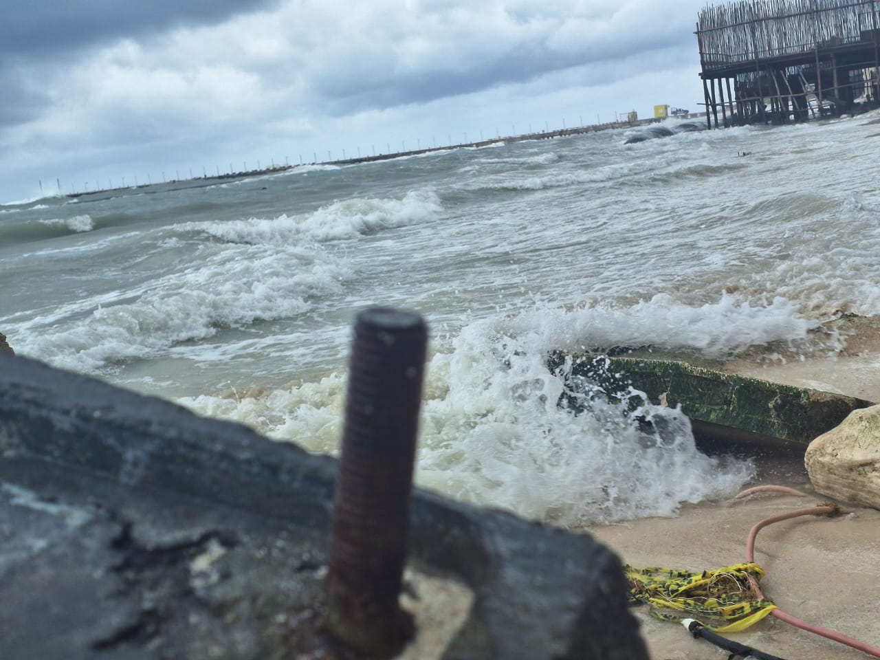 La afectación es tal que el bravo oleaje golpea con todas sus fuerzas a algunas construcciones que se ubican en la orilla.