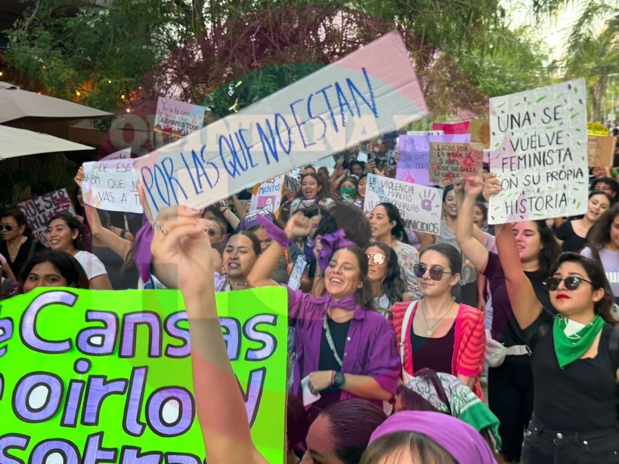 El contingente inició en el cruce de la Quinta Avenida con la avenida 38, desde donde avanzaron por toda esta zona turística, portando cartulinas con diversos mensajes y gritando consignas en contra de la violencia de género y en exigencia de justicia.