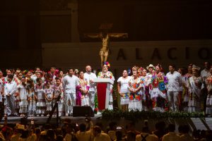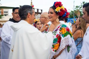 Antes del acto de clausura, Estefanía Mercado acompañó a la comunidad católica durante la misa oficiada por el Obispo de la Prelatura Cancún-Chetumal, Monseñor Pedro Pablo Elizondo, quien llamó a preservar con unidad las tradiciones y valores que dan identidad al pueblo.