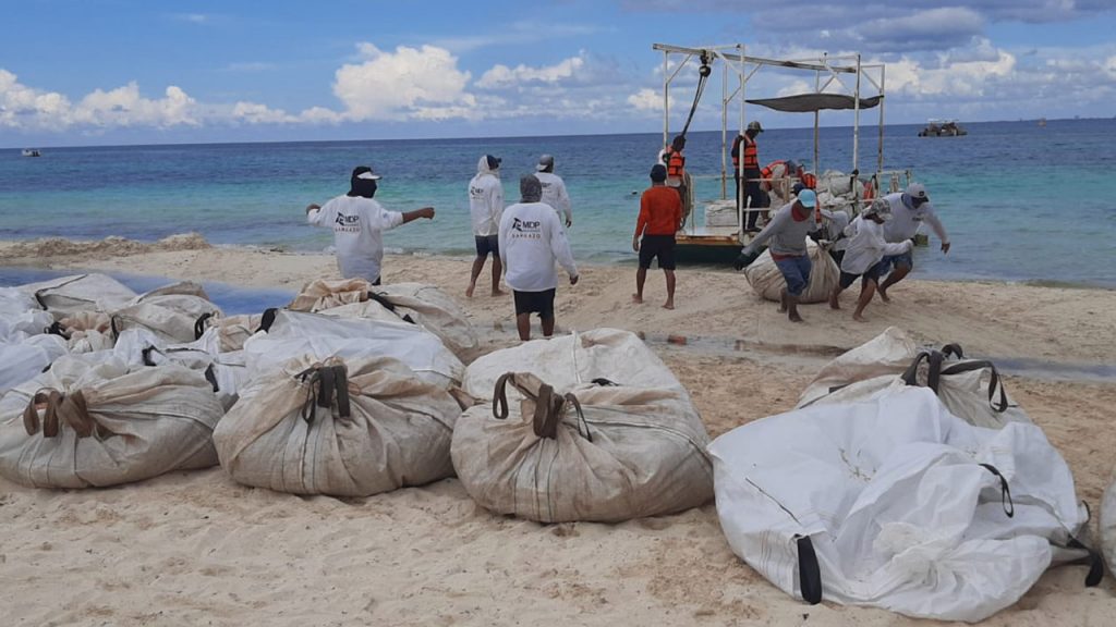 Con un equipo de alta tecnología, cuatro embarcaciones, dos de ellas de las llamadas sargaceras y dos barcazas para recolectar el alga marina en el mar e impedir su arribo a la playa, apoyada con un equipo humano de más de 50 personas, la empresa contratista MIDP inició a toda marcha los trabajos para contener el sargazo y mantener limpias las playas de este centro vacacional.