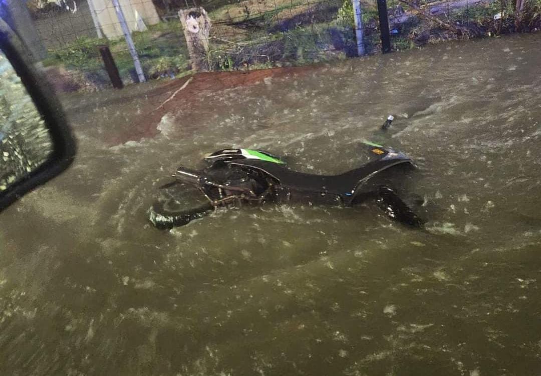 Fue en la calle 20 y avenida 10 cuando en un recorrido de vigilancia, los elementos observaron que una moto caía por el oleaje generado por el paso de los autos y la sacaron a tiempo antes de que el agua la llevara calles adelante.