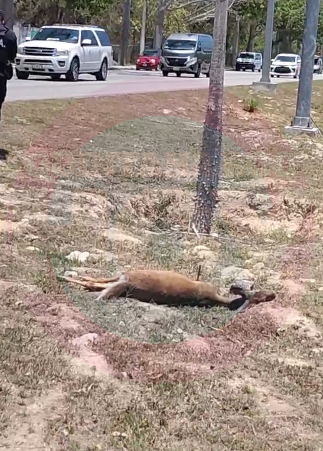 El venado sin vida terminó tirado en medio del camellón central, en tanto, el conductor del vehículo se detuvo para llamar a la policía, por lo que arribaron elementos municipales.