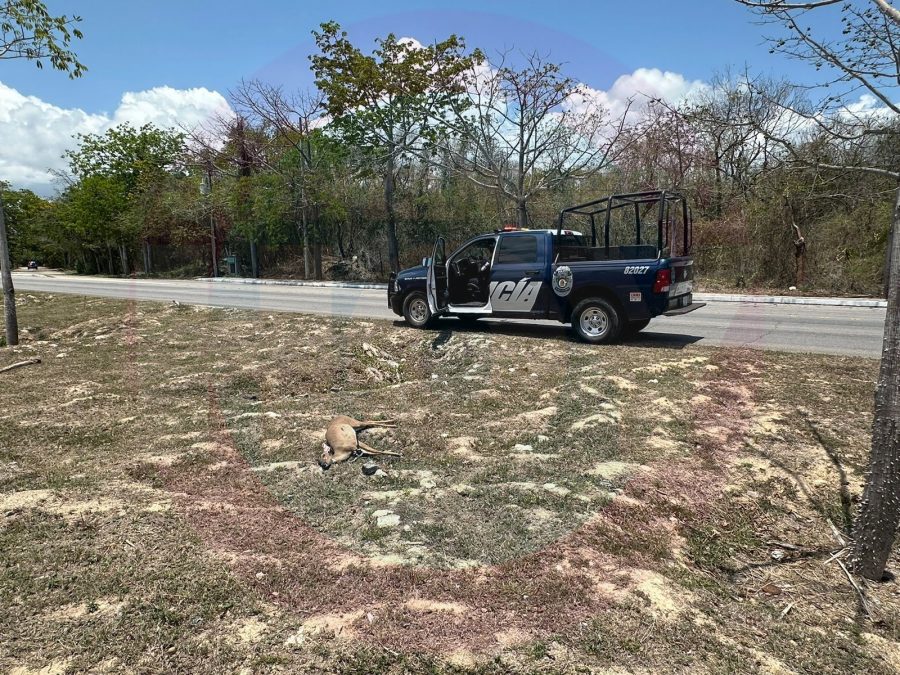 PLAYA DEL CARMEN.- Un venado murió esta tarde al ser atropellado por un vehículo que circulaba sobre la carretera federal 307, frente al parque Xcaret.
