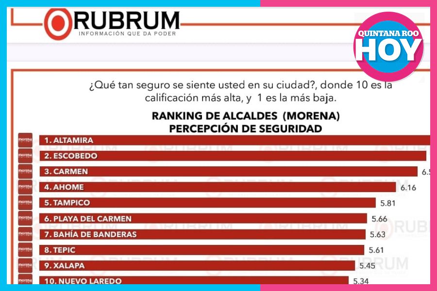 Playa del Carmen.- El municipio de Playa del Carmen, bajo el liderazgo de la presidenta municipal Estefanía Mercado, alcanzó el sexto lugar nacional en percepción de seguridad dentro del más reciente ranking de alcaldías de Morena, elaborado por Rubrum en agosto de 2025.