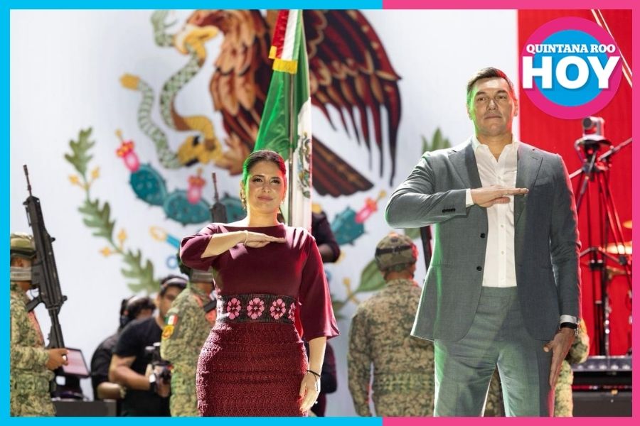 Playa del Carmen.– En un hecho sin precedente en la historia de Playa del Carmen, la presidenta municipal Estefanía Mercado encabezó esta noche la ceremonia conmemorativa por el 215 aniversario del Grito de Independencia ante más de 50 mil personas reunidas en el estadio Mario Villanueva y sus alrededores, en una fiesta mexicana que estuvo amenizada por Grupo Frontera.