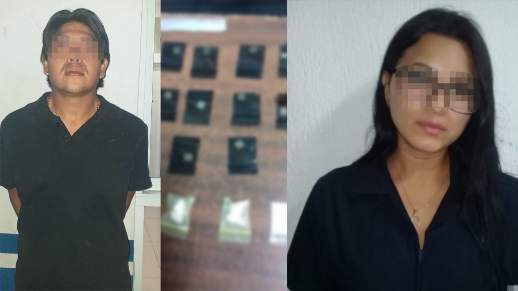 Policía de Playa del Carmen detiene a 2 personas que portaban droga.