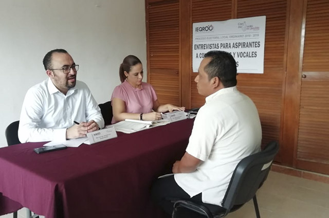 SOLIDARIDAD, Quintana Roo.-  Juan César Hernández Cruz y Thalía Hernández Robledo, consejeros estatales, efectuaron las entrevistas con los aspirantes que se apuntaban al cargo de consejero en el Distrito 10 del Instituto Electoral de Quintana Roo (Ieqroo); explicaron que buscan un total de 11 personas que integren este distrito y también se busca el principio de equidad de género.
