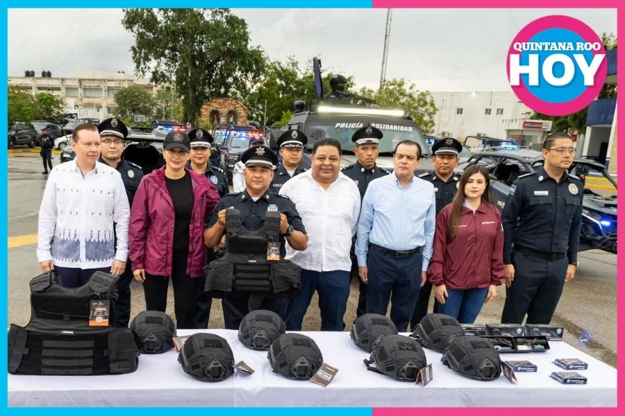 Playa del Carmen.- Con una inversión superior a 38.7 millones de pesos provenientes del Fondo de Aportaciones para el Fortalecimiento de los Municipios (FORTAMUN), la presidenta municipal, Estefanía Mercado, entregó uniformes, equipo táctico y cámaras corporales a elementos de la Secretaría de Seguridad Ciudadana Municipal (SSCM).