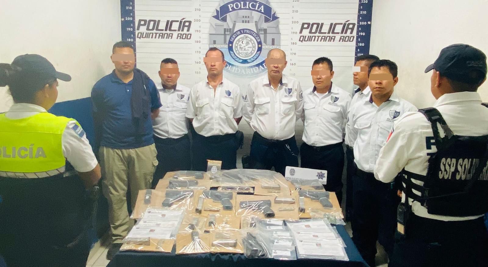 Playa del Carmen.- Agentes de la Policía Turística detuvieron ayer a siete hombres, guardias de seguridad de la empresa ARAB, por portar armas de fuego con un permiso apócrifo firmado por Jorge Robles, ex director de Seguridad Pública de Solidaridad.