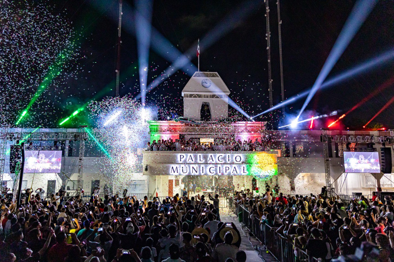 Playa del Carmen.- Ante una multitud de 20 mil habitantes mexicanos y amigos de otras nacionalidades, la presidenta Lili Campos dió el tradicional Grito de Independencia desde el palco del Palacio Municipal de la Plaza 28 de Julio, donde ondeó con orgullo la bandera de México mientras hacía resonar el repique de la campana.