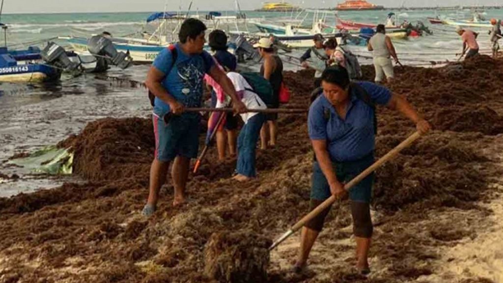 Fue alrededor de las 7:00 horas, cuando el recale comenzó a hacerse visible en la playa por lo que lugareños, además de empleados de comercios, se dieron a la tarea de comenzar a recolectarlo.