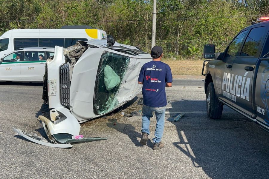 El vehículo quedó gravemente destrozado después de esta colisión, aunque todavía avanzó varios metros, hasta llegar a la parte central del bulevar Playa del Carmen, en donde cayó de costado.