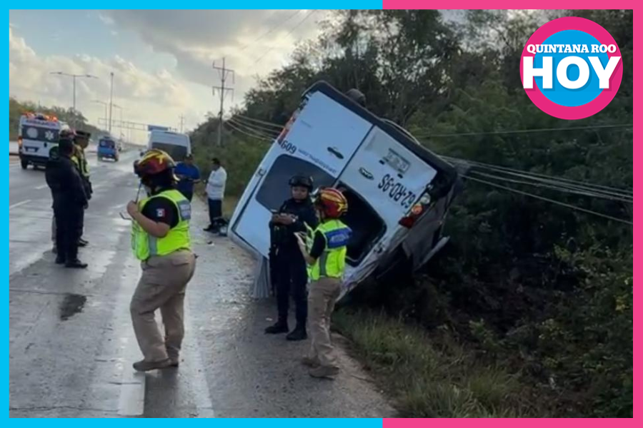 Una camioneta de transporte turístico volcó en la carretera federal 307, a la altura de Playa del Carmen, dejando personas lesionadas y movilizando a cuerpos de emergencia.