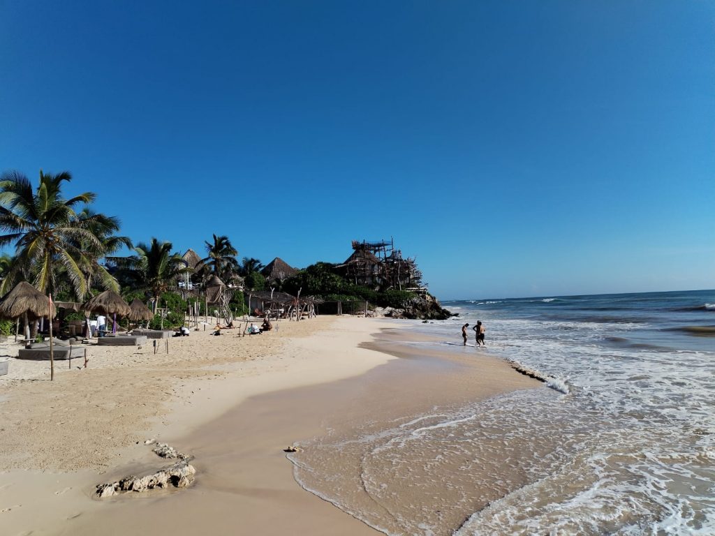 TULUM.— Las playas de Tulum comienzan a recuperar su color y atractivo natural luego de varias semanas afectadas por el recale de sargazo. Las brigadas de limpieza lograron retirar la mayor parte de los residuos acumulados y los accesos ya lucen en mejores condiciones, lo que ha permitido el regreso de visitantes y familias locales durante los últimos días.