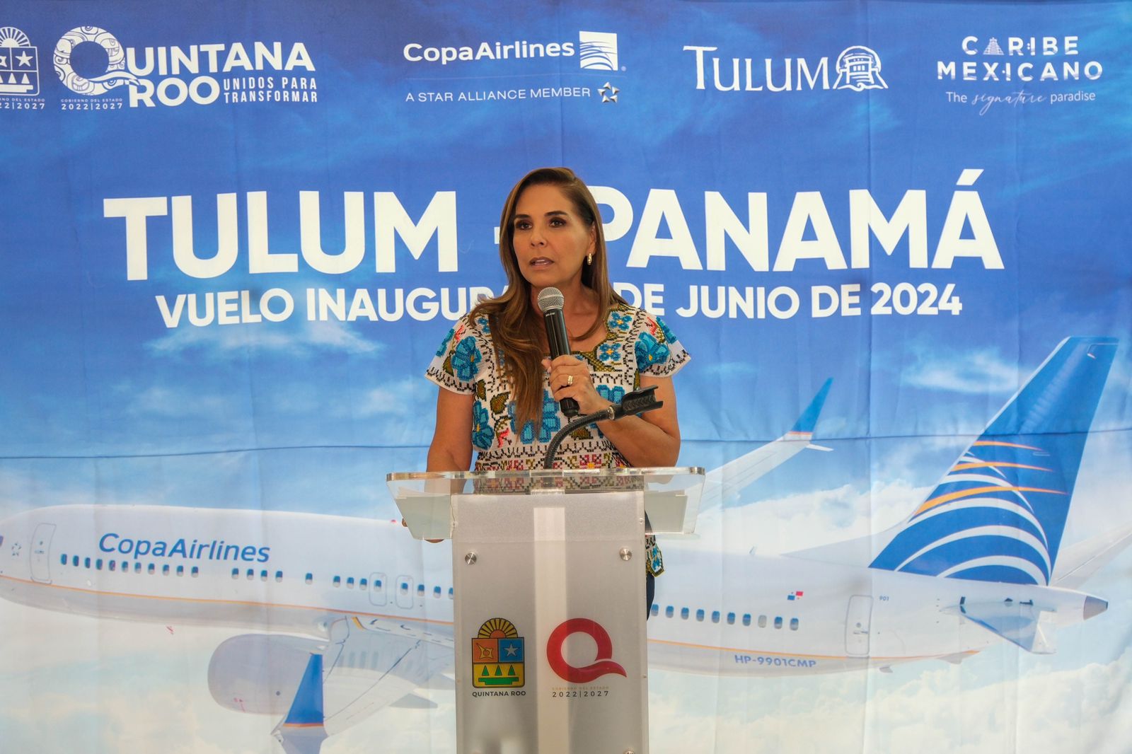 La gobernadora de Quintana Roo agradeció a la iniciativa privada, a las autoridades de Copa Airlines representada por David Defossey, su Gerente Regional; a María Luisa Navarro, Directora Senior de Relaciones con Gobierno; y a Mauro Arredondo, Gerente General Copa Airlines México, a que apuesten por este nuevo aeropuerto, por nuestro liderazgo turístico, por Tulum como centro de nuestra milenaria Cultura Maya y que se sumen al desarrollo del sur de nuestro estado.