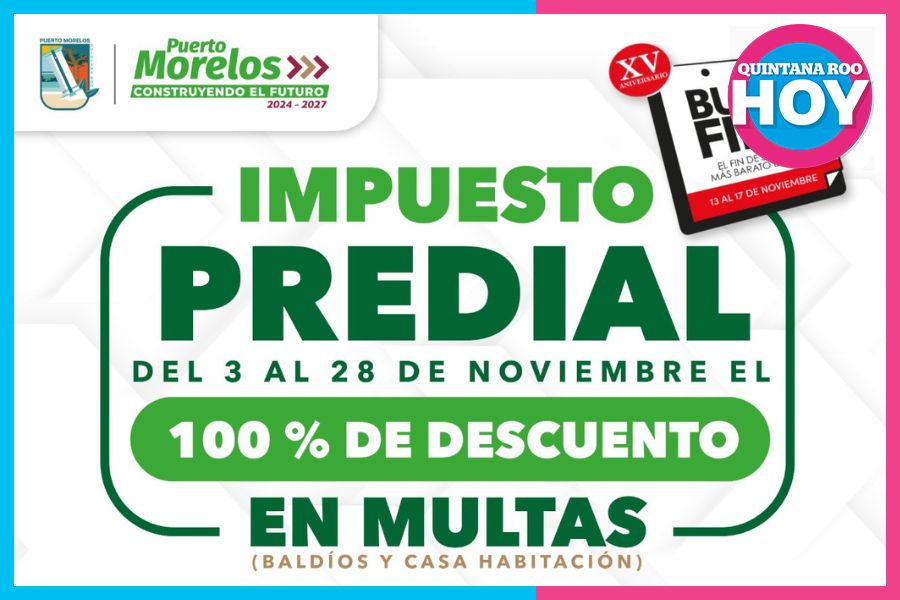 Puerto Morelos, Quintana Roo.- La presidenta municipal Blanca Merari Tziu Muñoz recordó a los contribuyentes portomorelenses la puesta en marcha de la Jornada de Descuentos “El Buen Fin 2025”, que comenzó el lunes 3 del presente mes y concluirá el viernes 28, a fin de que obtengan importantes rebajas en multas y recargos.