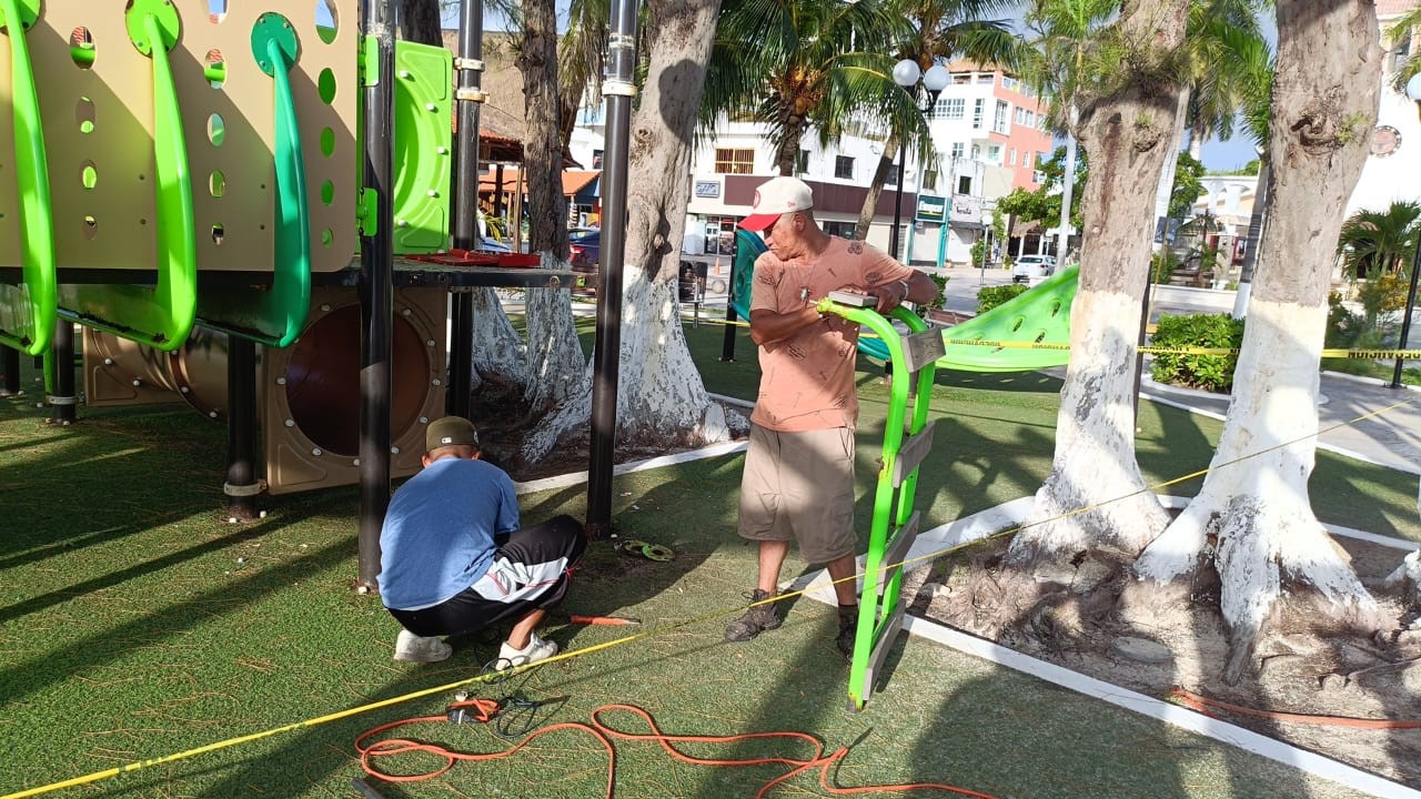 ANTE SU AVANZADO DETERIORO Y PARA EVITAR RIESGOS A NIÑAS Y NIÑOS, RETIRAN EL MÓDULO DE JUEGOS INFANTILES DEL PARQUE FUNDADORES DE PUERTO MORELOS