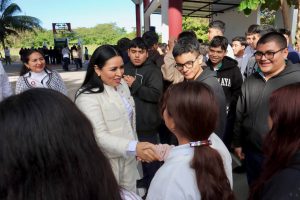 La presidenta municipal recordó que el artículo tercero constitucional establece que la educación debe ser democrática, entendiendo la democracia como un sistema de vida fundado en el constante mejoramiento económico, social y cultural del pueblo, principios que siguen guiando la transformación del país.