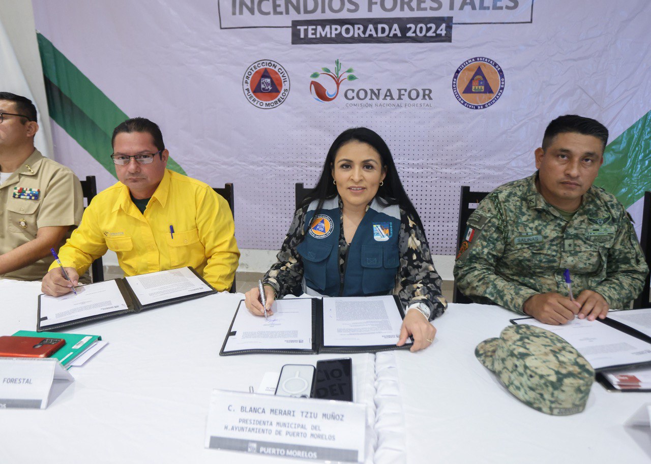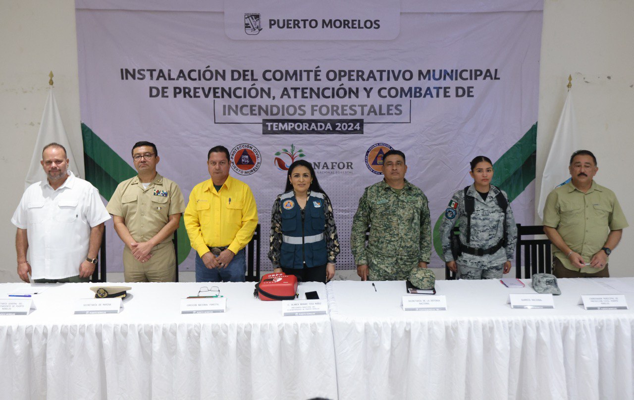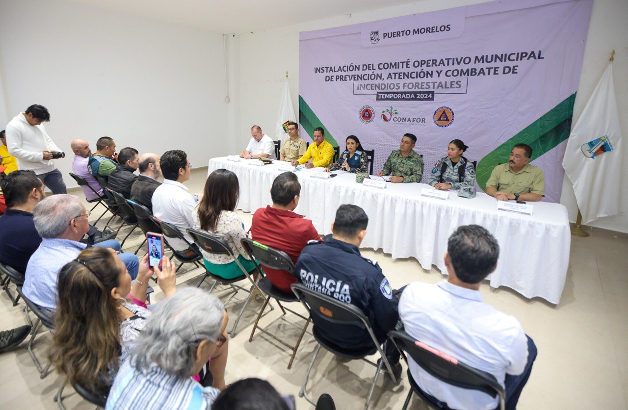 Puerto Morelos, Quintana Roo, 7 de febrero de 2024.— “Con la firme convicción de proteger y preservar el entorno natural, el patrimonio que nos define como comunidad”, la presidenta municipal Blanca Merari Tziu Muñoz presidió hoy la instalación del Comité Operativo Municipal de Prevención, Atención y Combate de Incendios Forestales para la Temporada 2024.