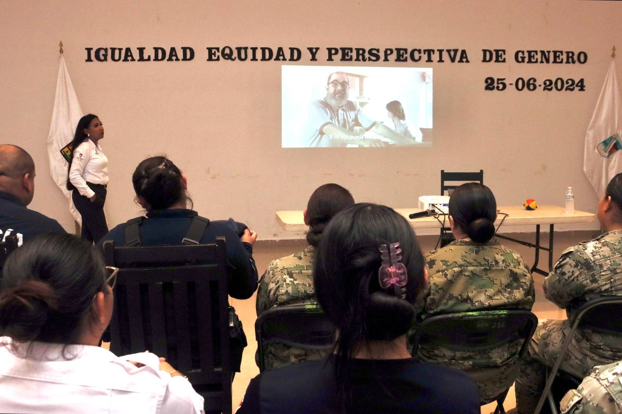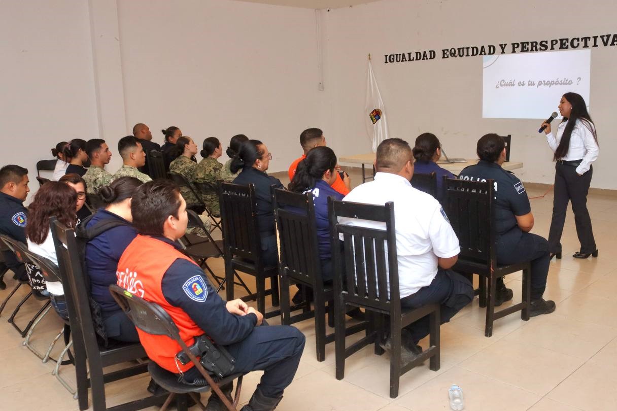 Puerto Morelos.- El Grupo Especializado para la Atención a Víctimas de Violencia Intrafamiliar y de Género (Geavig) de Puerto Morelos, y el Secretariado Ejecutivo del Sistema Estatal de Seguridad Pública (SESESP) impartieron una plática sobre “Igualdad, equidad y perspectiva de género”, dirigida a elementos de la Secretaría Municipal de Seguridad Ciudadana.