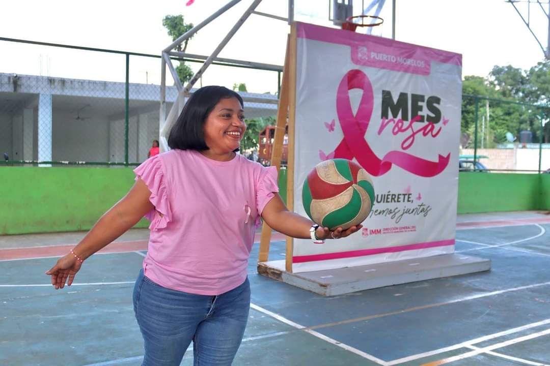 PUERTO MORELOS.- Como parte de las acciones de concientización y sensibilización sobre el cáncer de mama, el Instituto Municipal de la Mujer (IMM) de Puerto Morelos llevó a cabo un encuentro amistoso de voleibol denominado “Juego por la vida”, que tuvo lugar en el domo deportivo de la Delegación de Leona Vicario, en el marco del Mes Rosa.