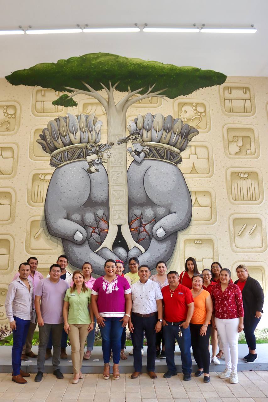 En este sentido, agradeció a la directora de Cultura y las Artes, Brittany Janney López García, por las atenciones brindadas al personal docente y directivo de los jardines de niños, durante el recorrido en el que conocieron los murales, entre los que destaca uno que muestra una enorme ceiba, árbol sagrado de los mayas, que simboliza la conexión de la tierra con el cielo y el inframundo.